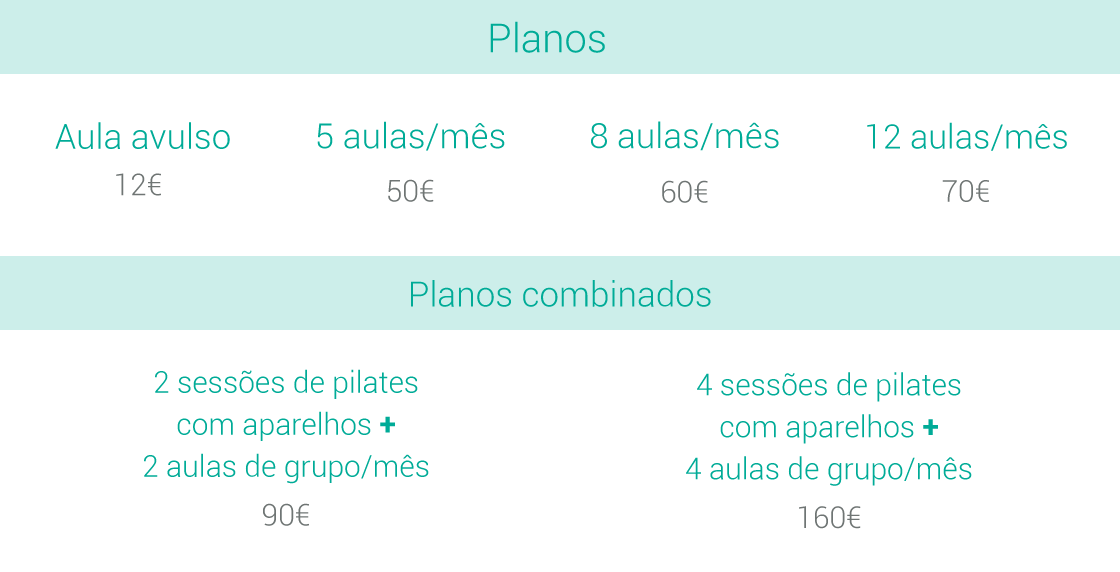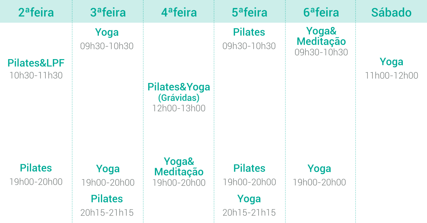 Todas as aulas de pilates têm a duração de 60 minutos e estão sujeitas a marcação prévia.